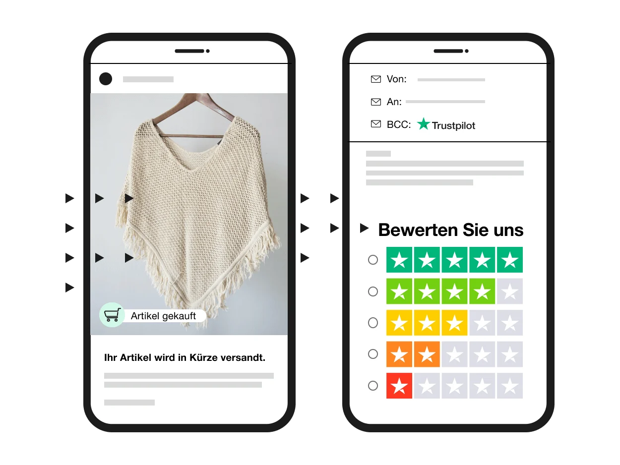 Sie möchten mehr Bewertungen erhalten? Die Erinnerungs-E-Mails von Trustpilot erinnern Ihre Kunden automatisch daran, eine Bewertung abzugeben, und steigern die Anzahl der Bewertungen um durchschnittlich 35 %.